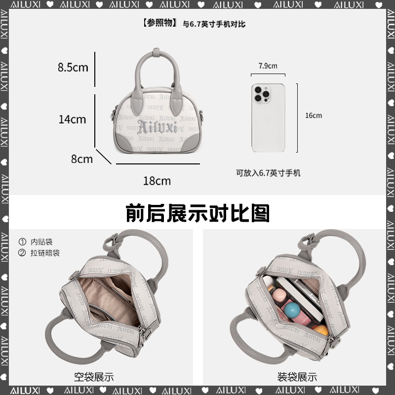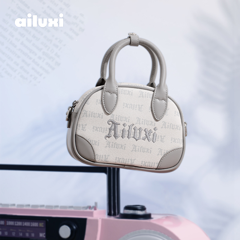 爱路喜馒头包包女款小众设计感美式复古保龄球手提包灰色小手拎包