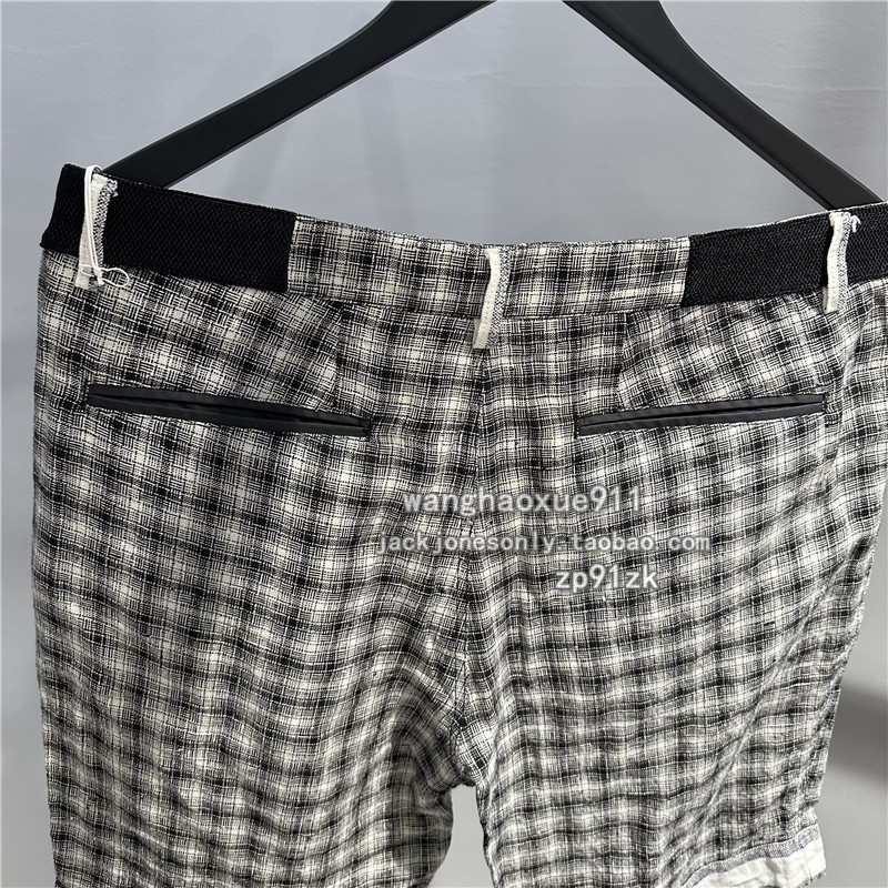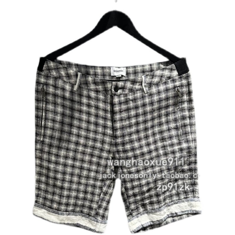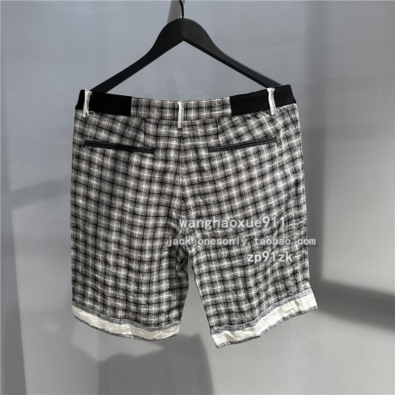法国潮牌BLACKGATEONE夏季男士直筒亚麻棋盘格子日常休闲潮流短裤