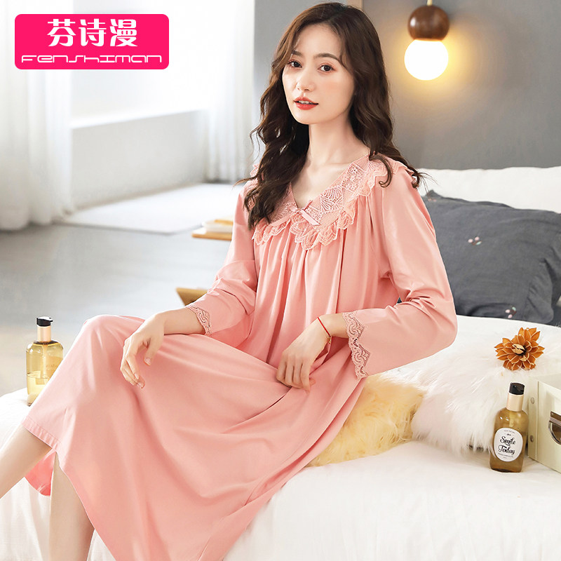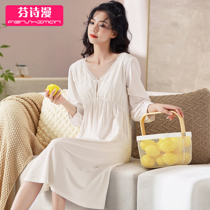 睡裙女春秋款纯棉长袖秋季薄款高级感睡衣裙子孕妇夏季长款连衣裙