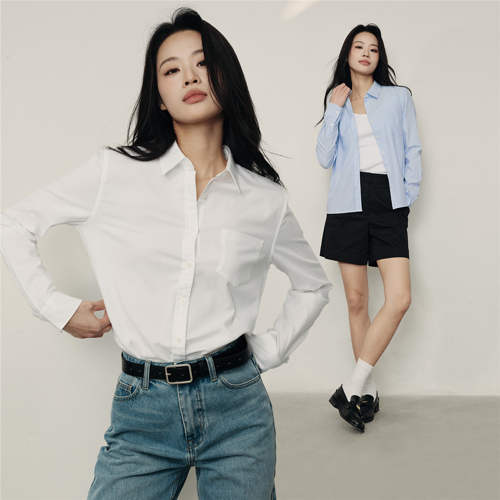 【韩国明星同款】佐丹奴新款单口袋通勤女士宽松长袖衬衫05345142