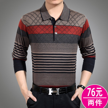 春秋季2023新款中老年人男装中年男士长袖t恤爸爸上衣薄款体恤衫