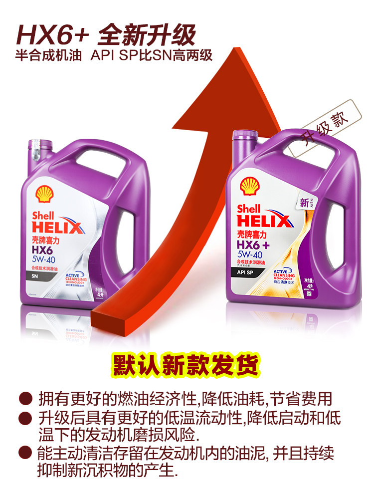 壳牌正品机油 升级HX6 喜力半合成机油5W-40 汽车发动机油SN级4L