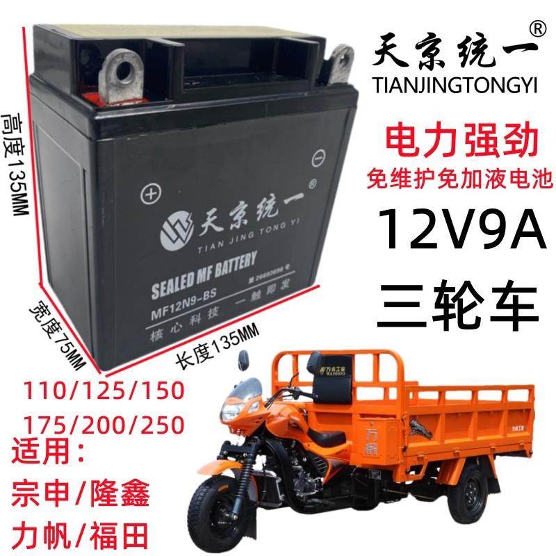 摩托三轮车110/125/150/175宗申福田大运12伏9安免维护电池干电瓶