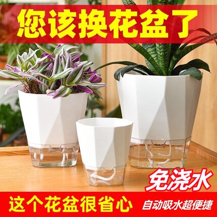 懒人自动吸水花盆清仓塑料树脂简约仿陶瓷绿萝箩多肉室内水培花盆