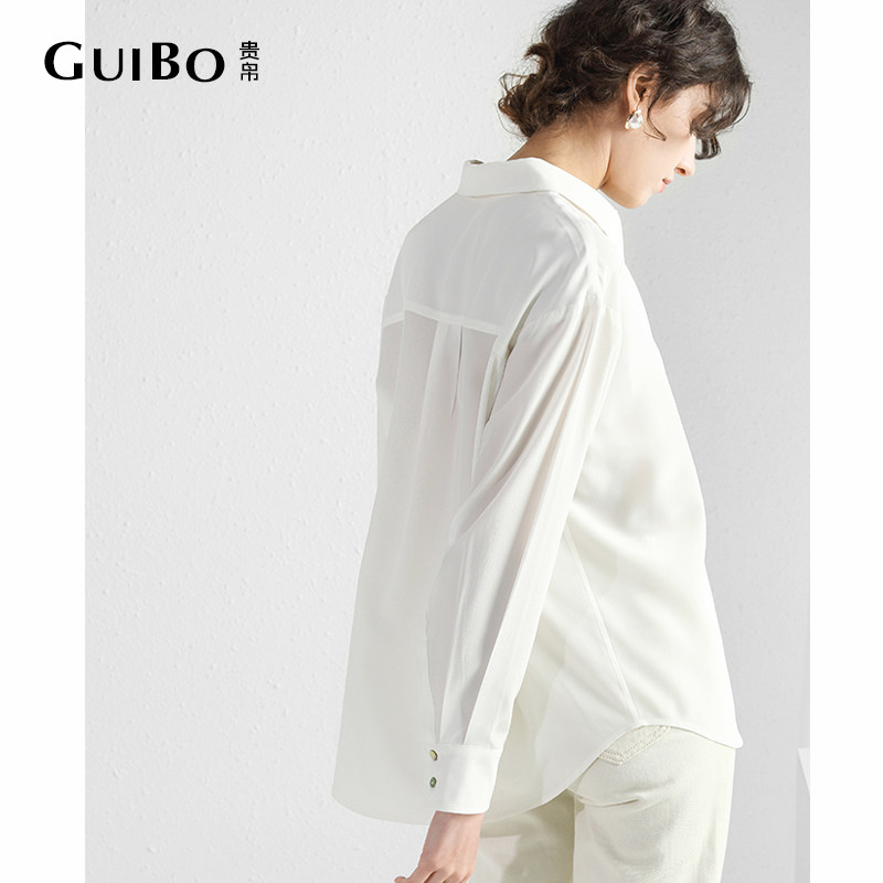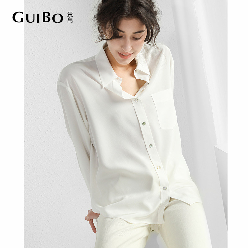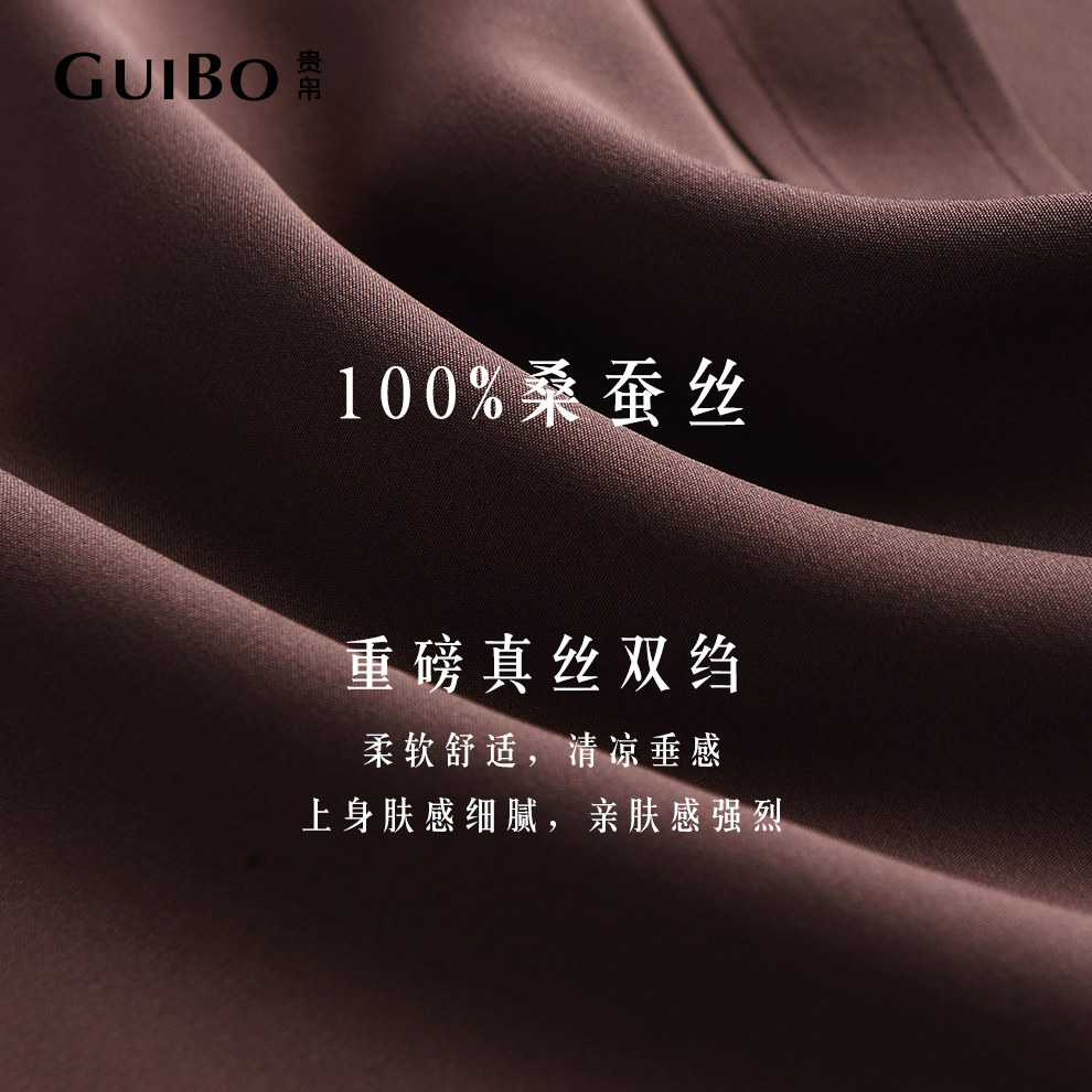贵帛长袖100%桑蚕丝真丝双绉衬衫