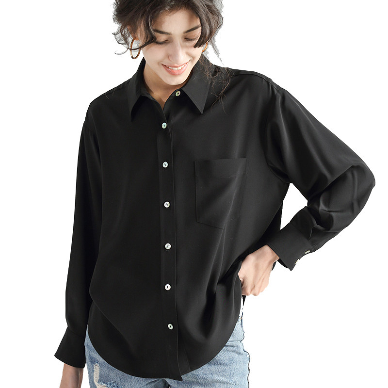 重磅真丝衬衫女真丝双绉桑蚕丝衬衣100%蚕丝上衣休闲宽松衬衫高级
