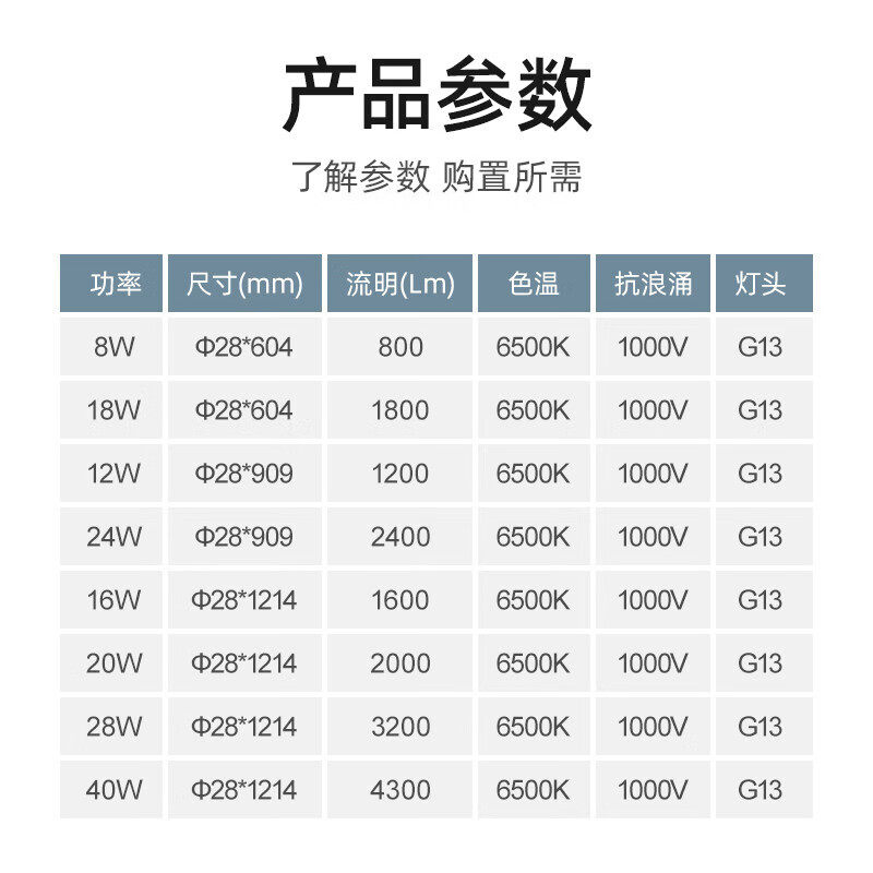 公牛T8双端LED灯管大功率高亮长寿命高效节能照明家用日光灯玻璃