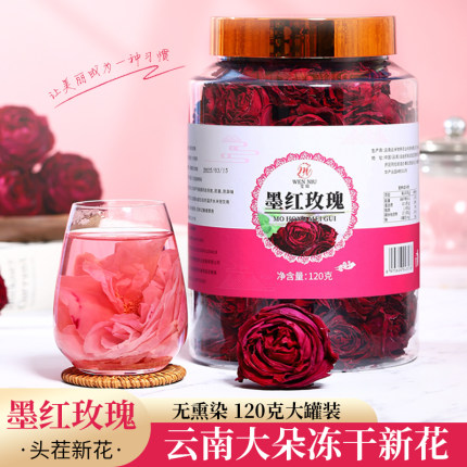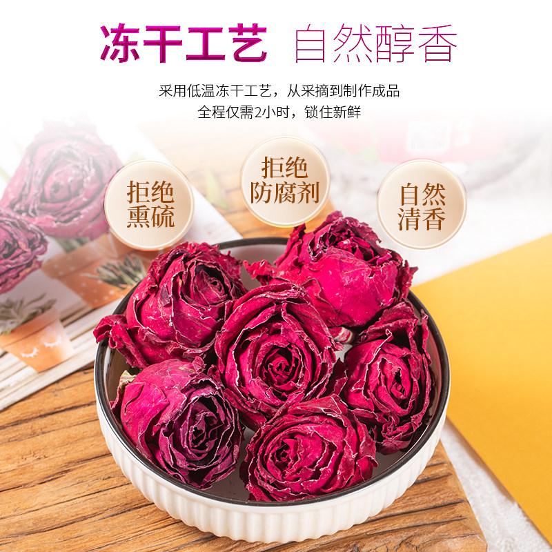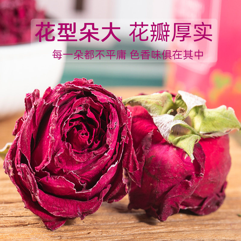 2025无硫大朵云南冻干墨红玫瑰花茶官方旗舰店玫瑰花干花冠茶新鲜