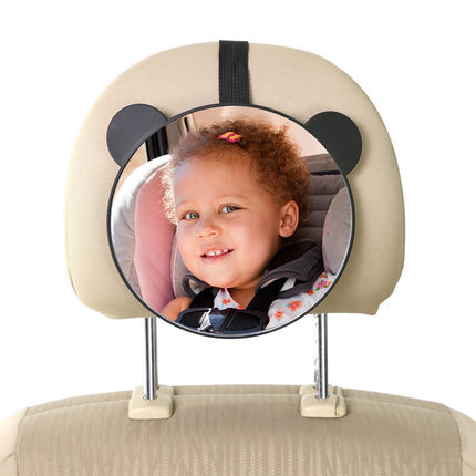 卡通熊猫耳朵安全座椅反向观察镜婴儿后视提篮镜车载防碎汽车通用