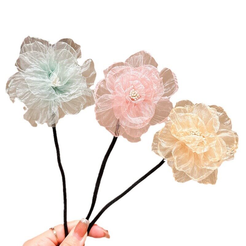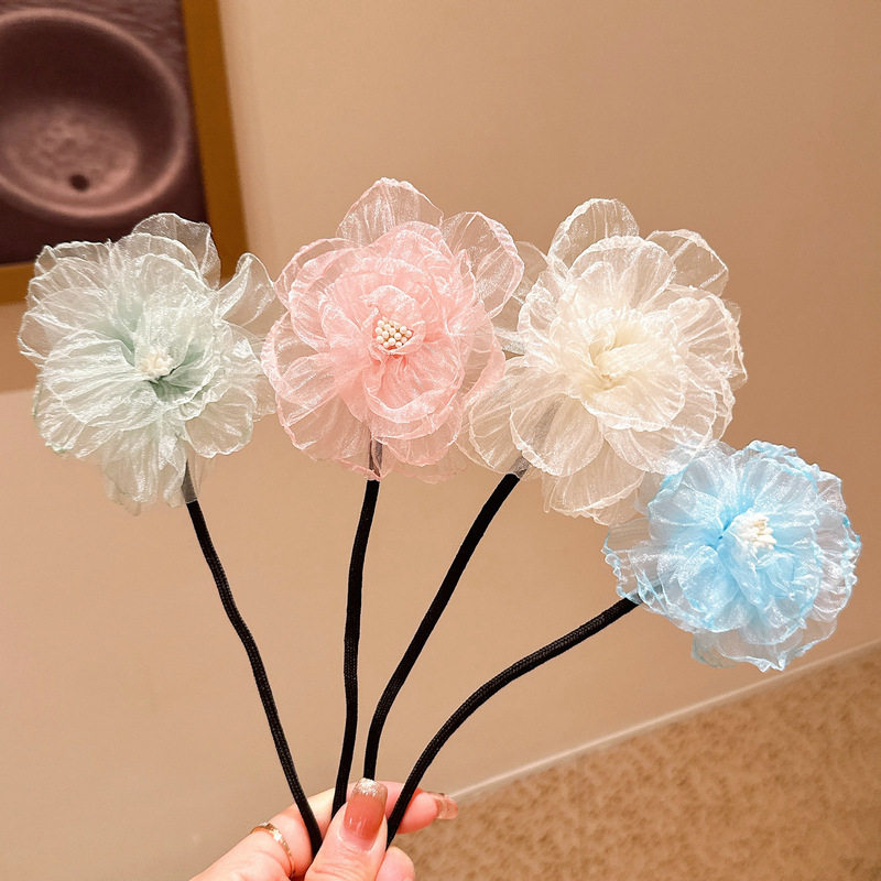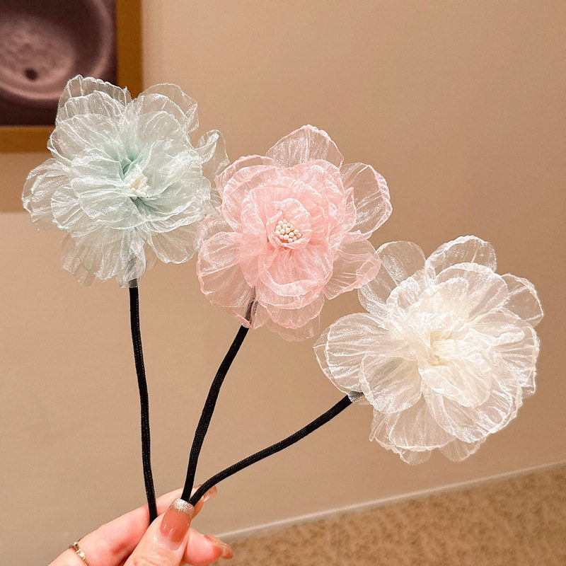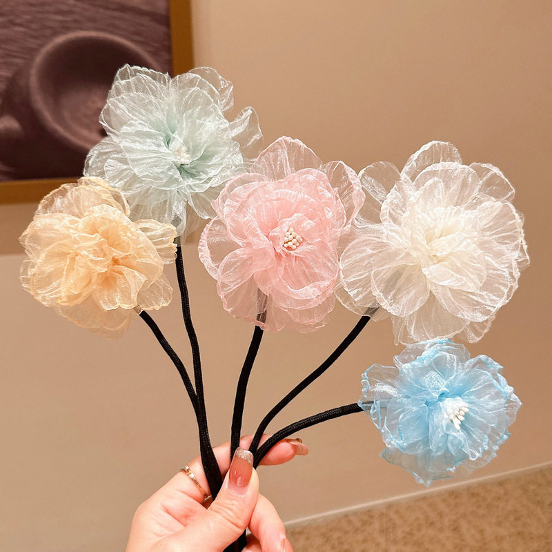 儿童花朵盘发杆丸子头神器气质小女孩山茶花头饰夏季新款女童发饰