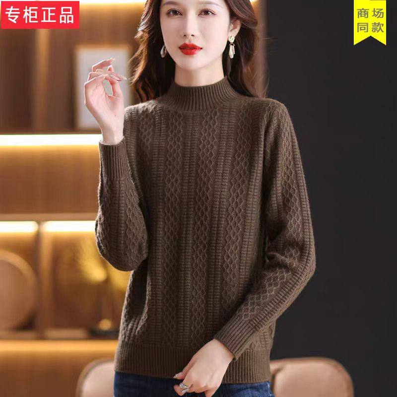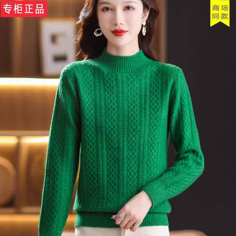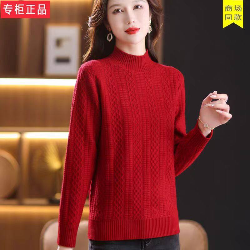 鄂尔多斯市妈妈羊毛衫女半高领厚款宽松针织毛衣纯色内搭打底衫