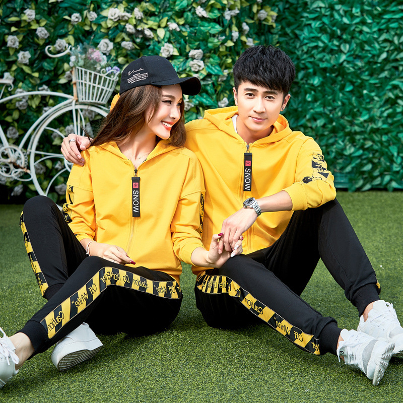春季新款连帽卫衣套装男士运动套装休闲情侣装春秋运动服装男外套