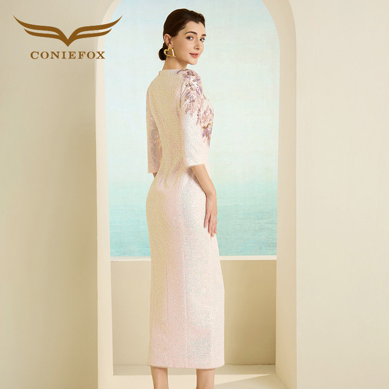 创意狐高端轻奢高级感礼服日常可穿订婚连衣裙主持人晚会粉色裙子