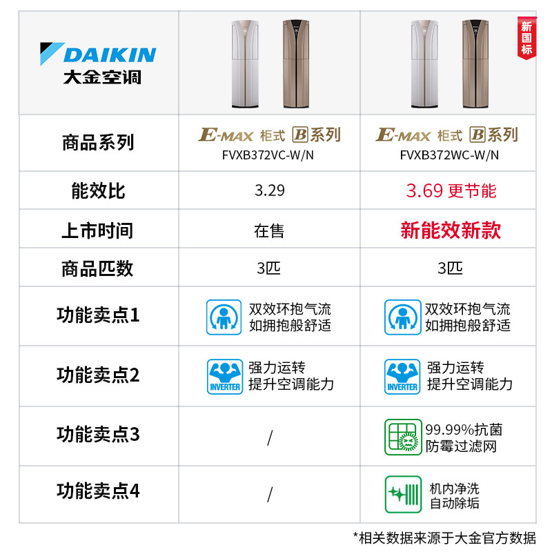 Daikin/大金FVXB372WC-W/N变频冷暖2匹3匹柜机立式家用大金空调