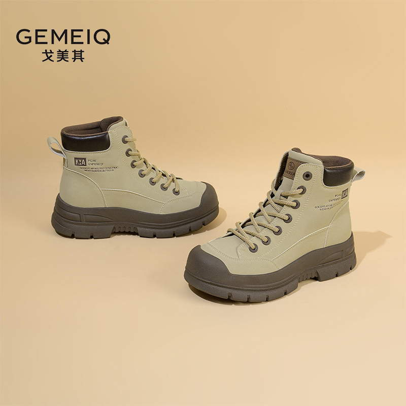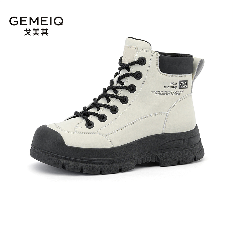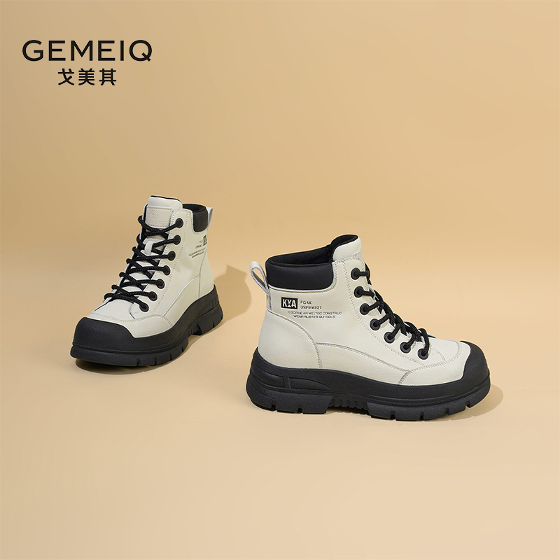 春秋马丁靴厚底网红复古撞色炸街时尚短靴美式工装靴女潮