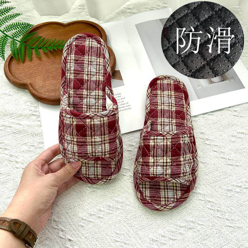 新款格子居家居布艺颗粒布底拖鞋男女情侣木地板春秋冬无声可机洗