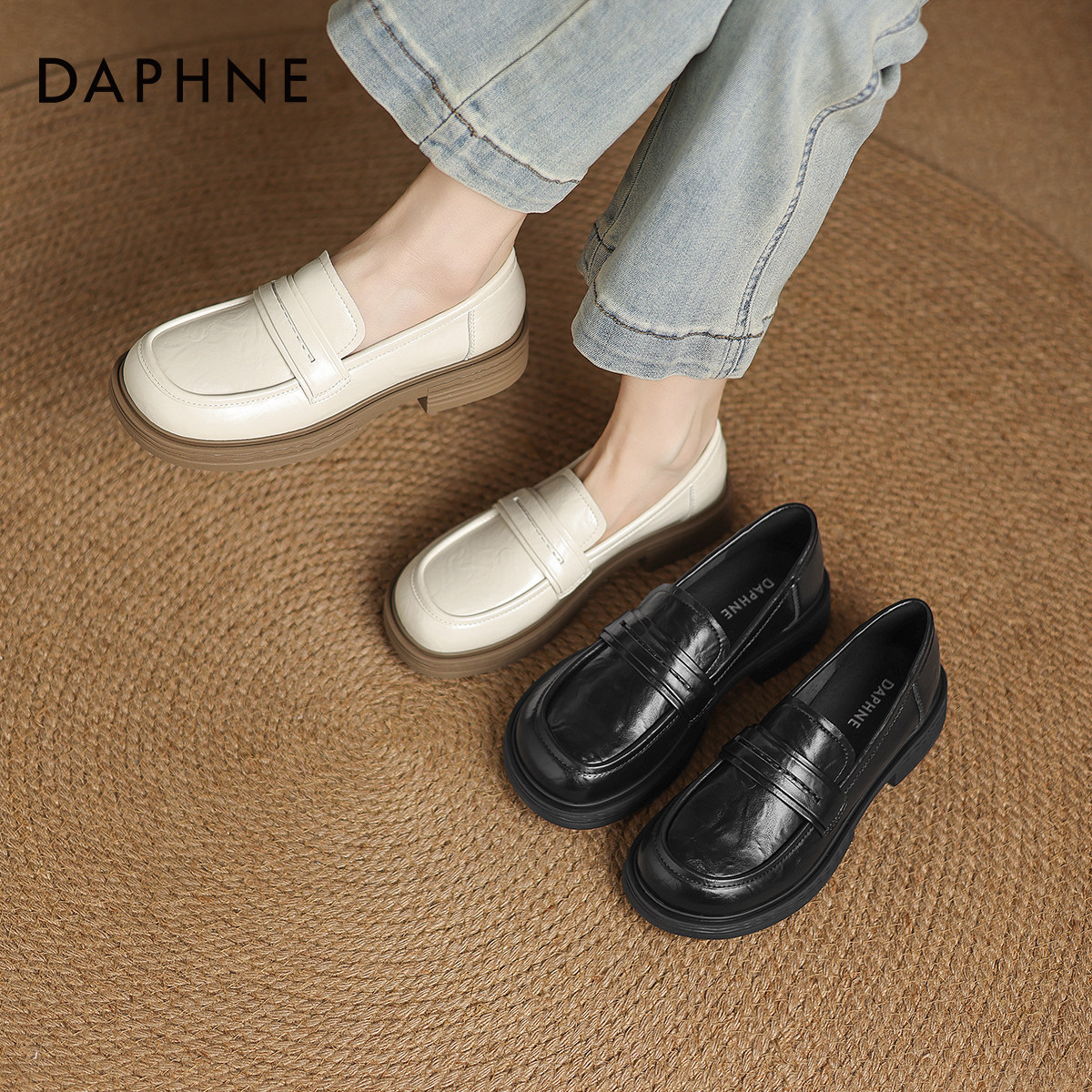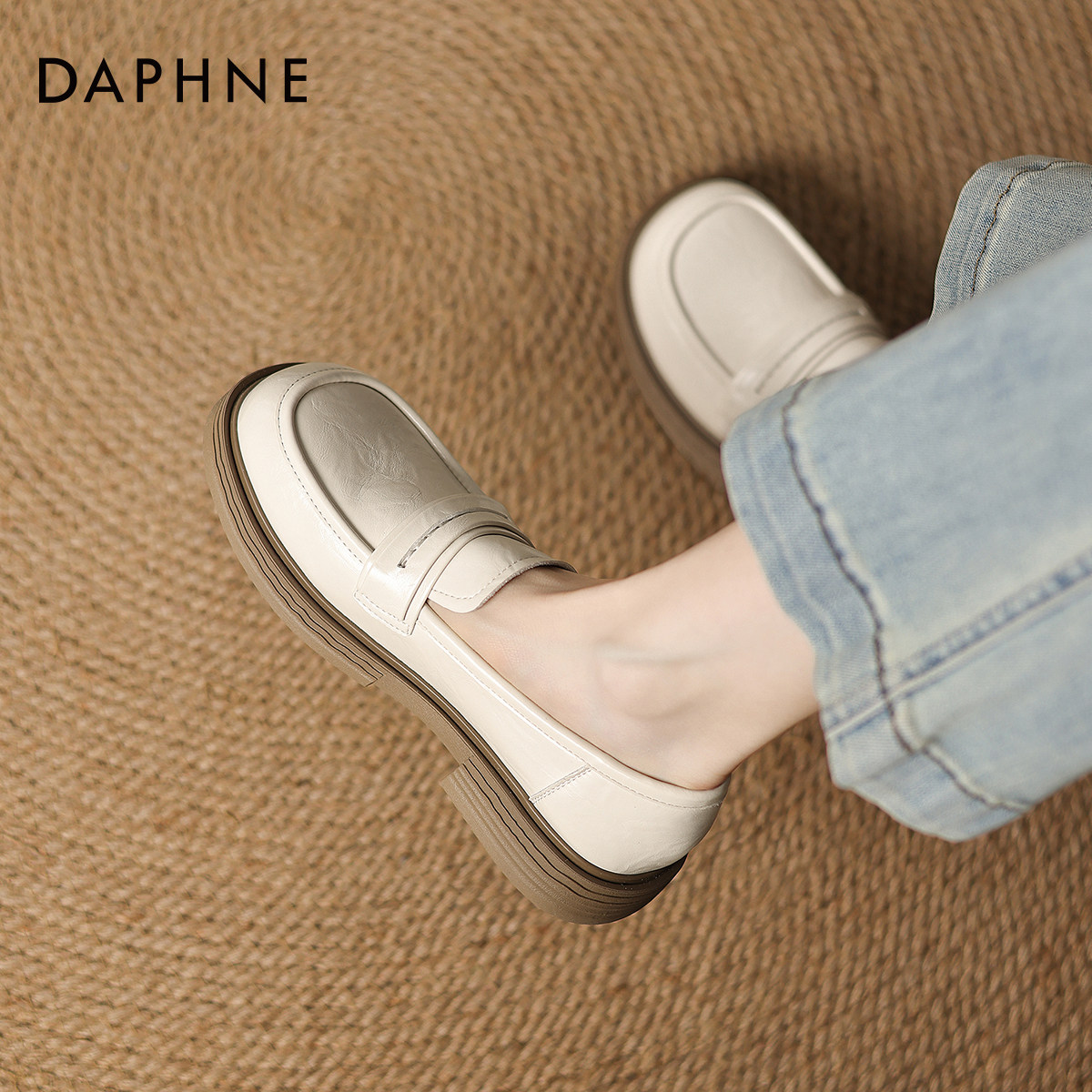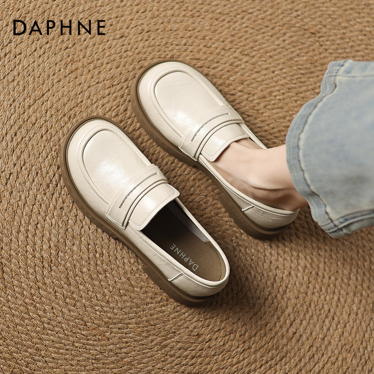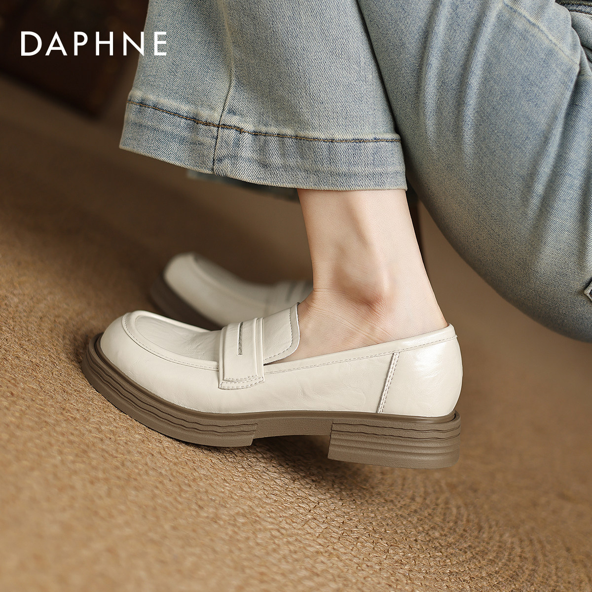 达芙妮白色乐福鞋女2025冬季新款一脚蹬小皮鞋英伦风通勤圆头单鞋