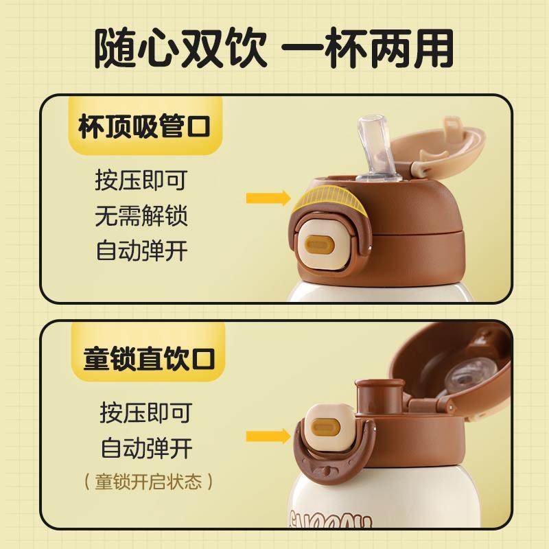 史努比儿童保温杯男女孩带吸管水杯316食品级幼儿园宝宝直饮水壶