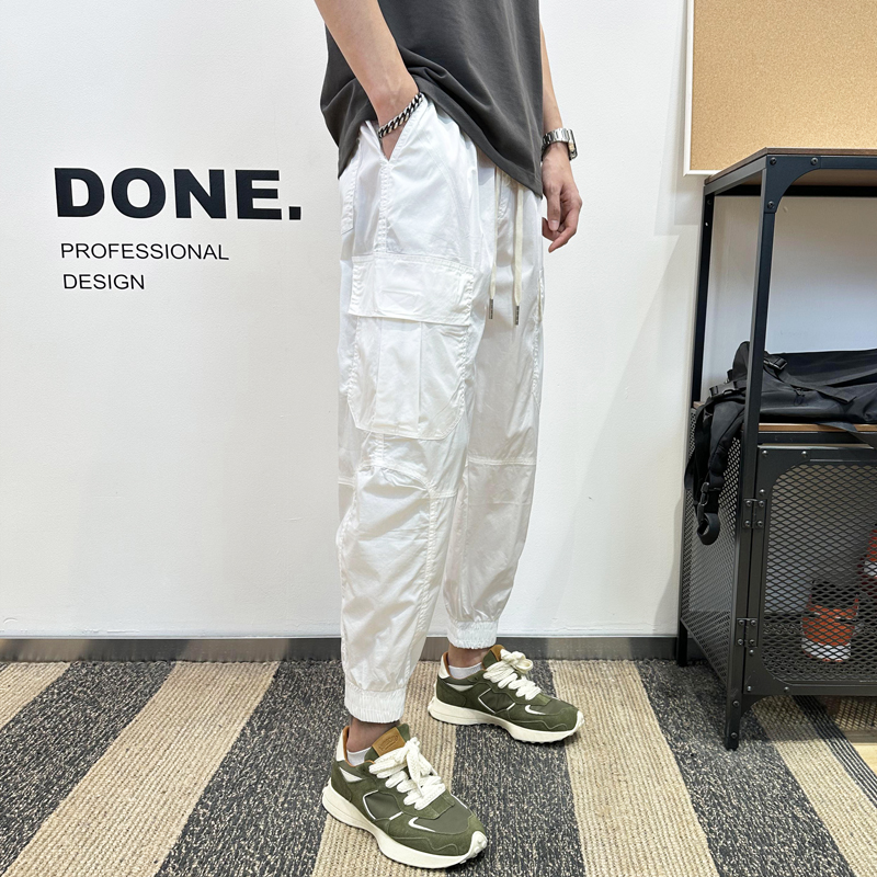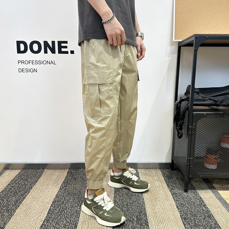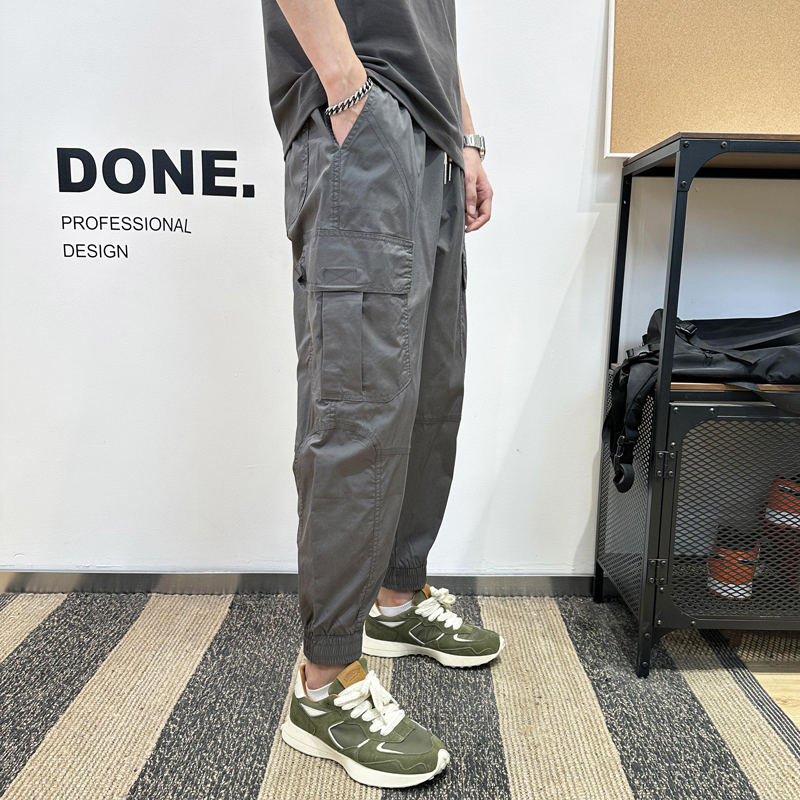 2025春夏季工装裤子男款高段位纯色宽松阔腿九分束脚裤小脚哈伦裤