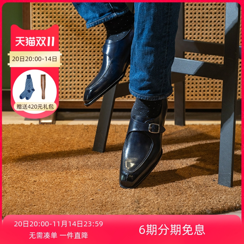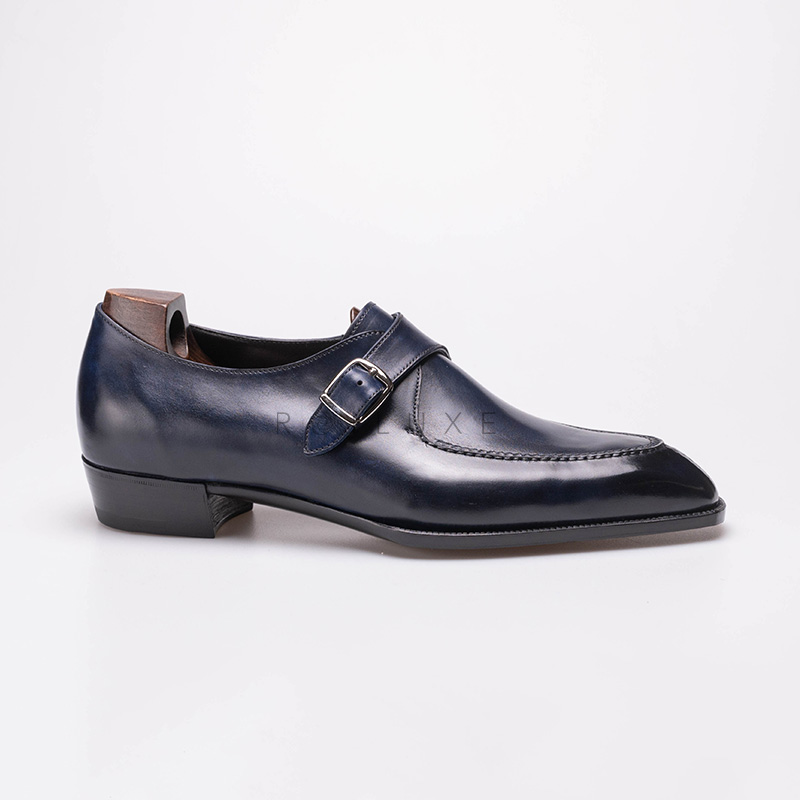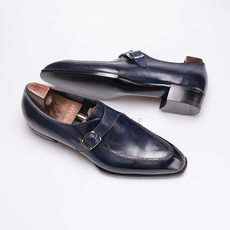 Oct Tenth手工固特异Monk孟克皮鞋 手缝沿条结构蓝擦色单扣僧侣鞋