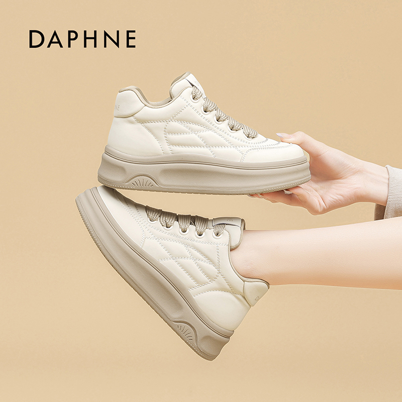 达芙妮高帮厚底小白鞋女2025秋冬加绒保暖休闲板鞋时尚百搭面包鞋