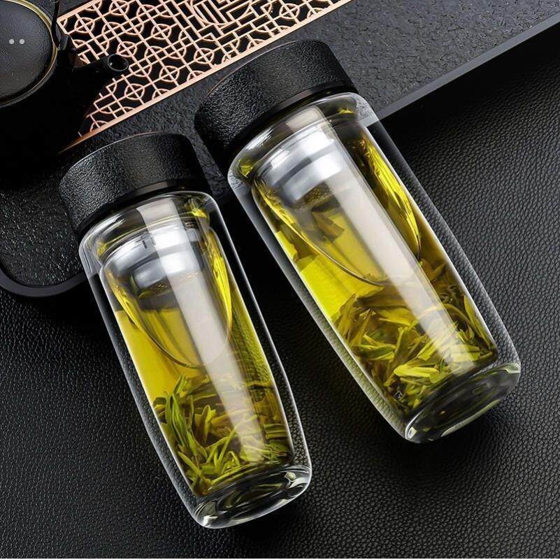 双层鹅蛋玻璃杯定制百家姓加厚泡茶水男女士玻璃杯便携开业商务杯