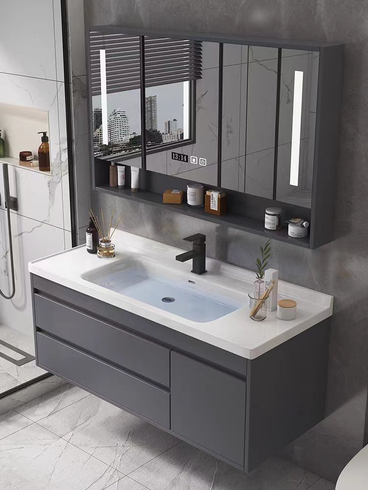 现代简约陶瓷一体盆浴室柜组合卫生间洗脸盆洗手盆轻奢洗漱台套装
