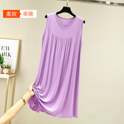 宽松睡裙女夏季莫代尔大码居家长裙纯色外穿休闲无袖背心连衣裙