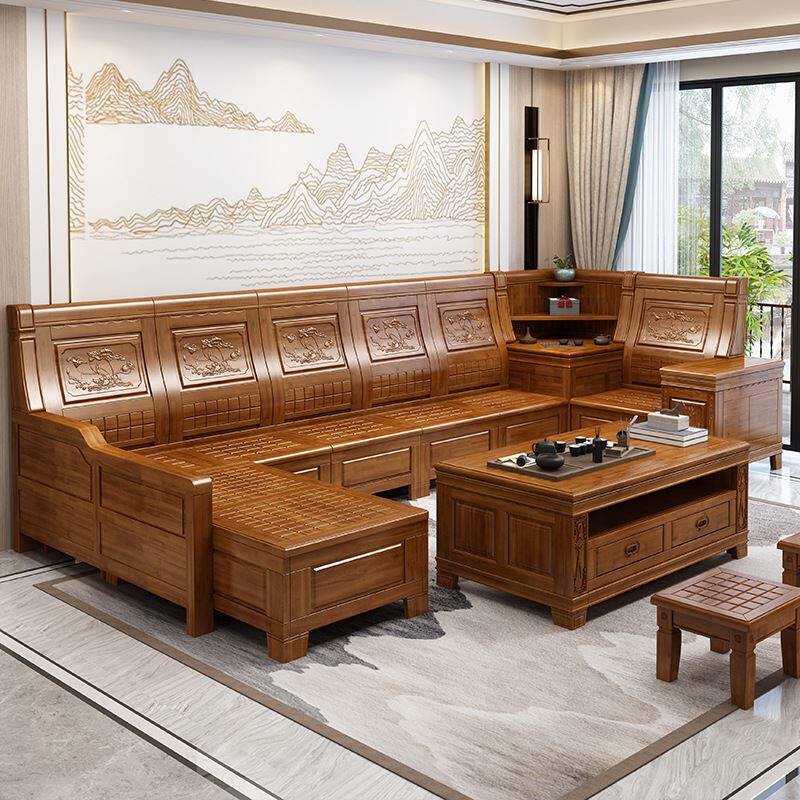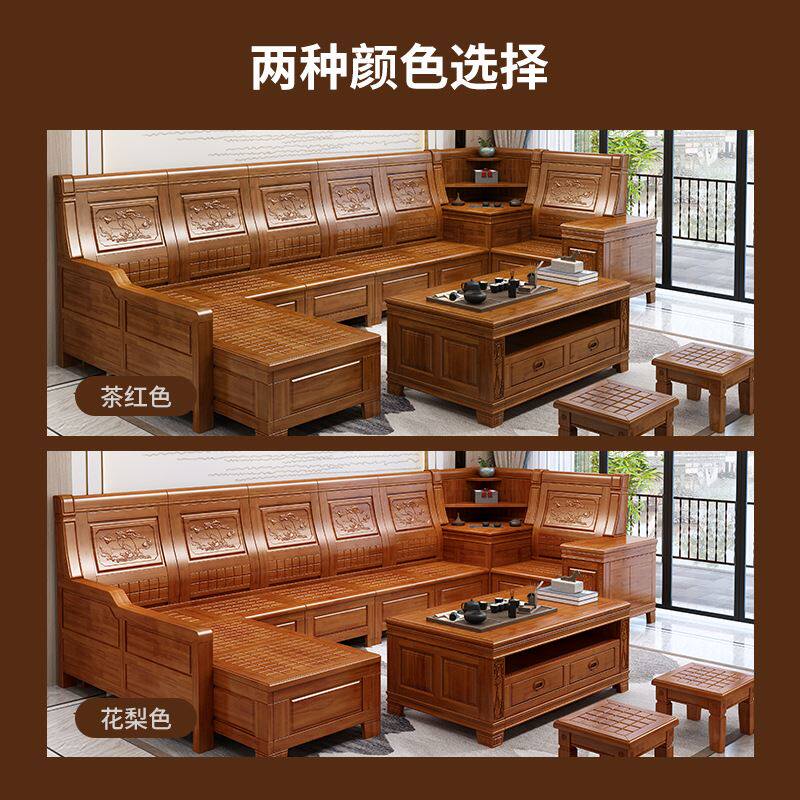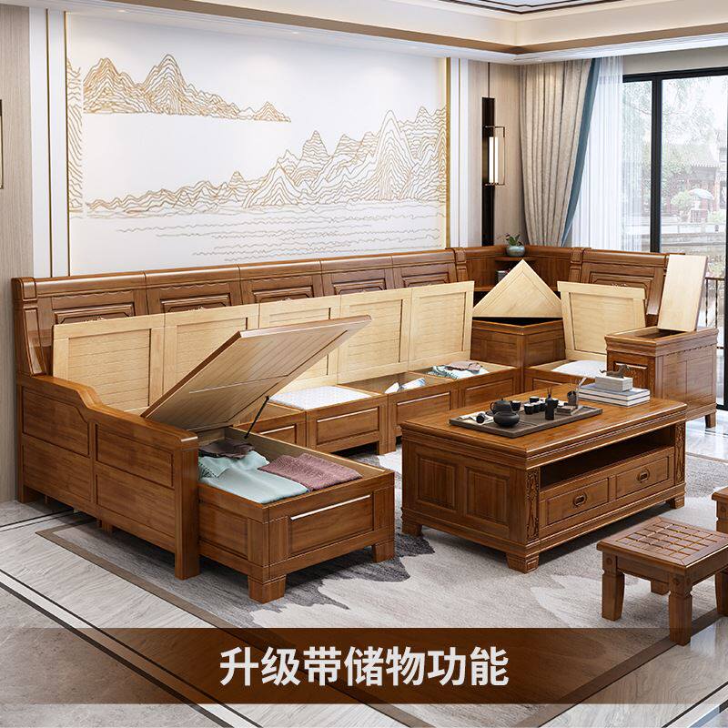 香樟木实木沙发组合新中式冬夏两用客厅沙发大小户型仿古储物家具