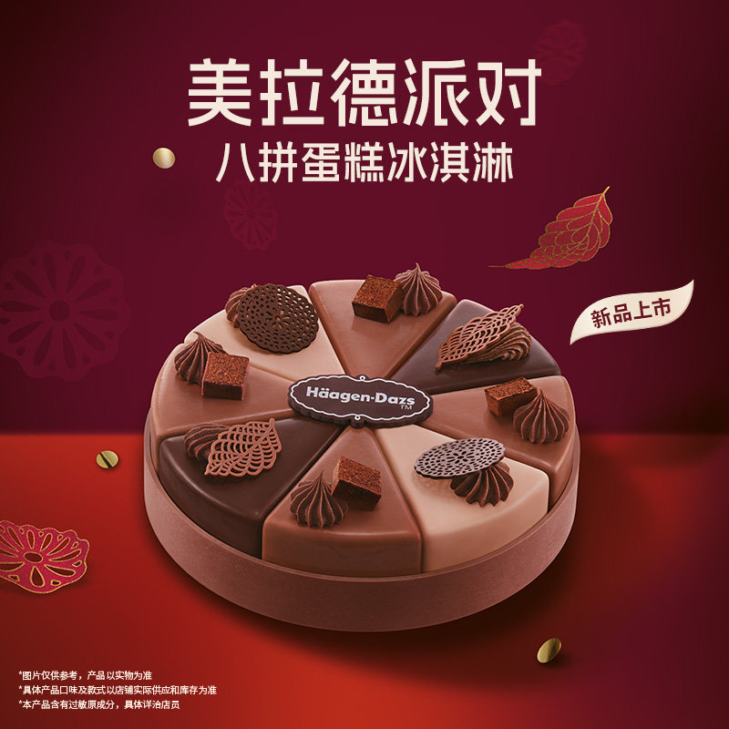 【到店兑换】哈根达斯1030g美拉德派对八拼蛋糕冰淇淋电子兑换券