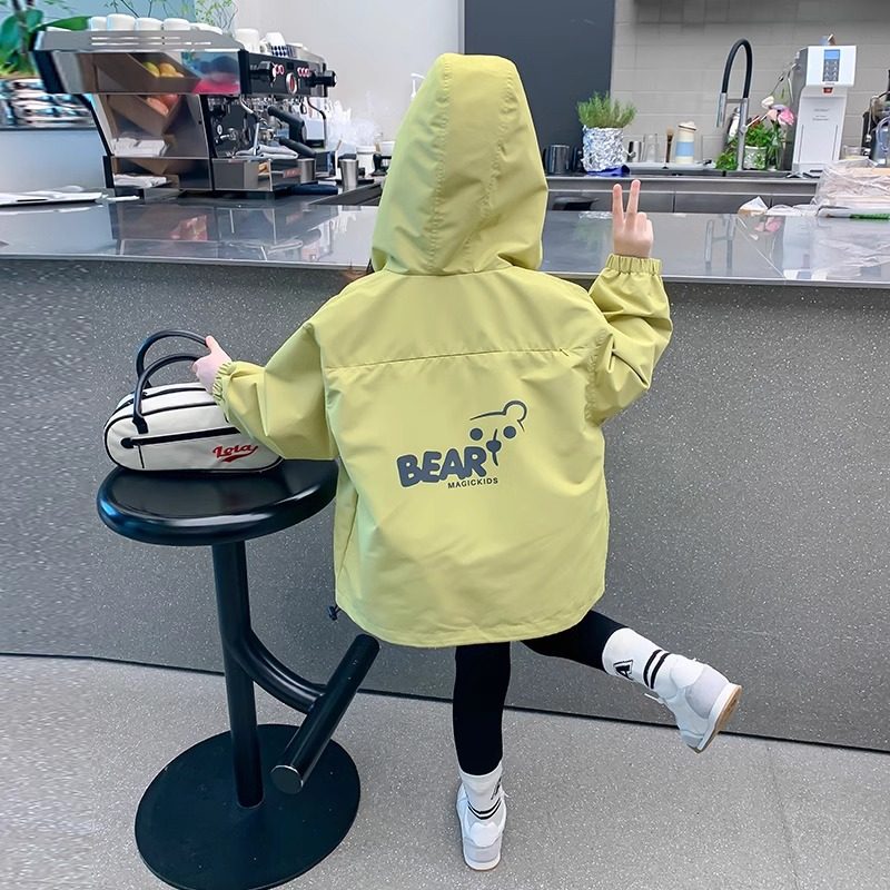 女童冲锋衣外套春秋冬2026新薄款防风女孩洋气连帽运动超好看上衣