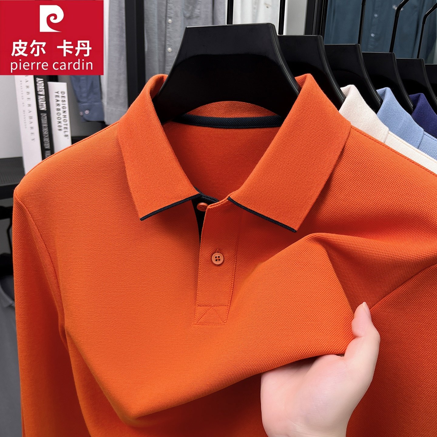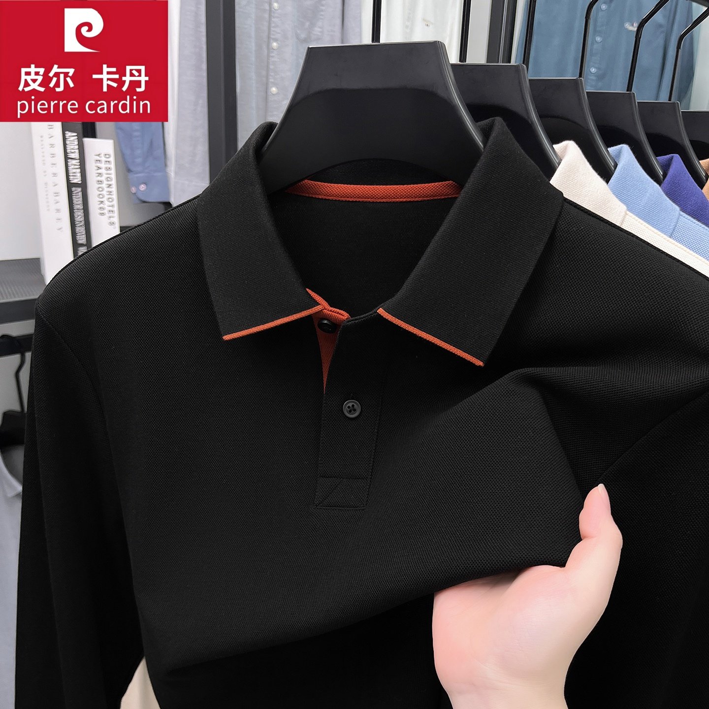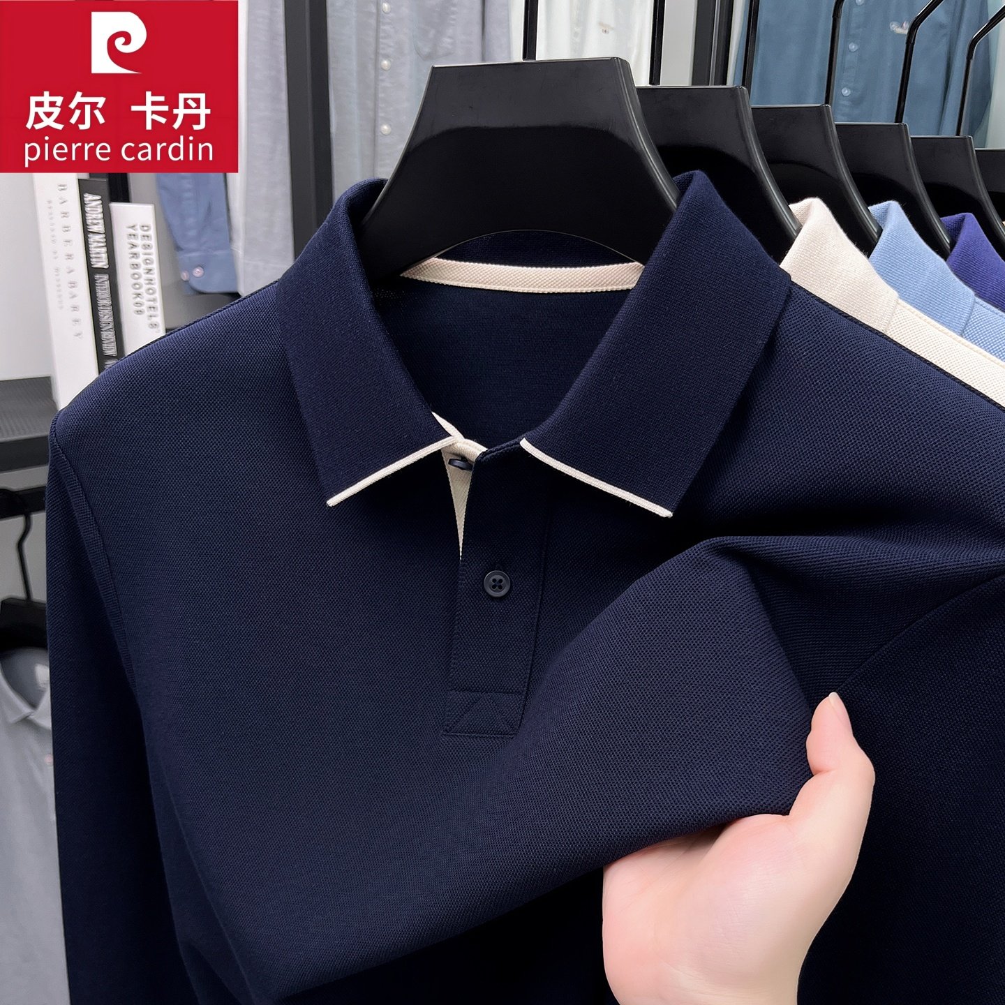 皮尔卡丹男士长袖T恤高端品牌商务休闲翻领POLO衫丝光棉双面珠地