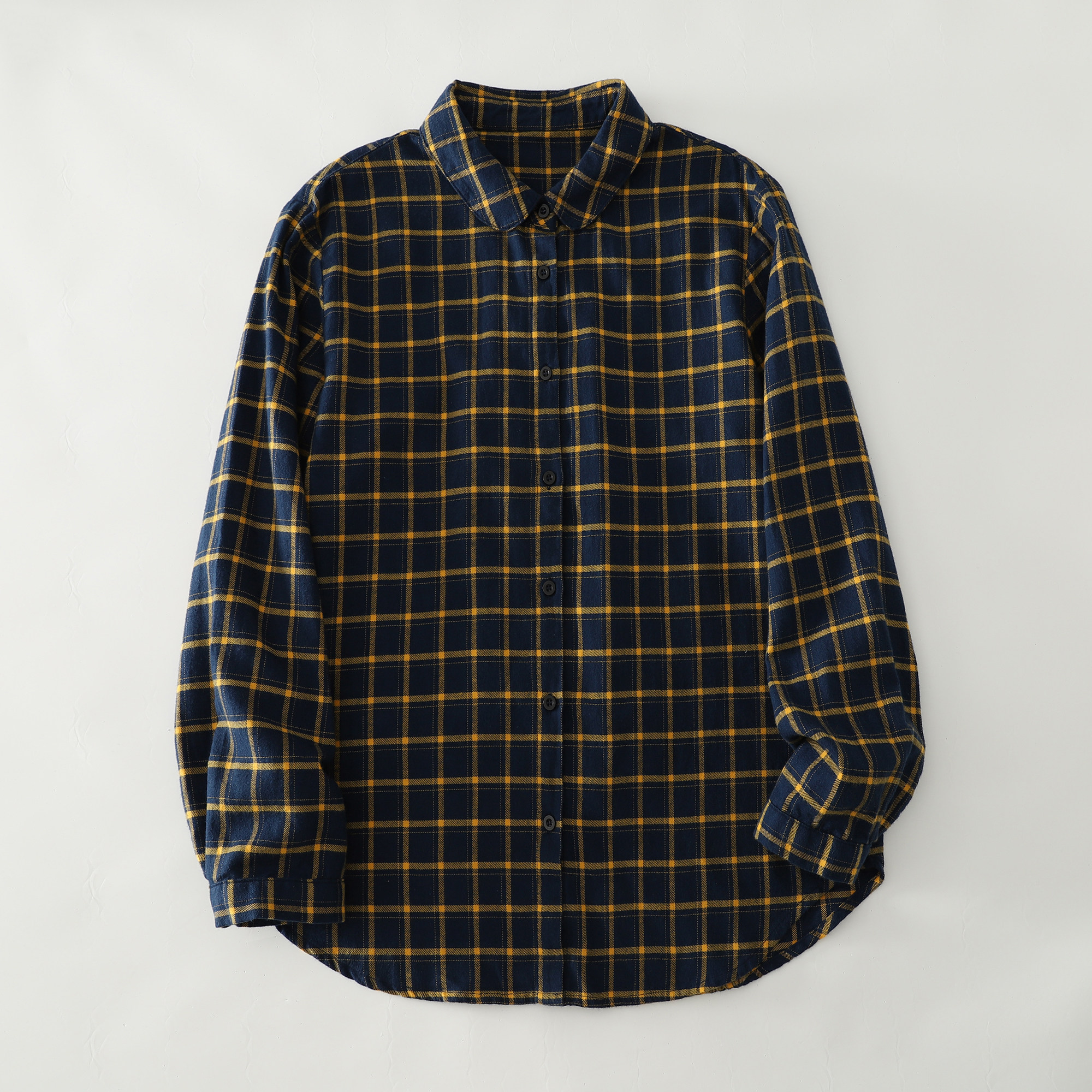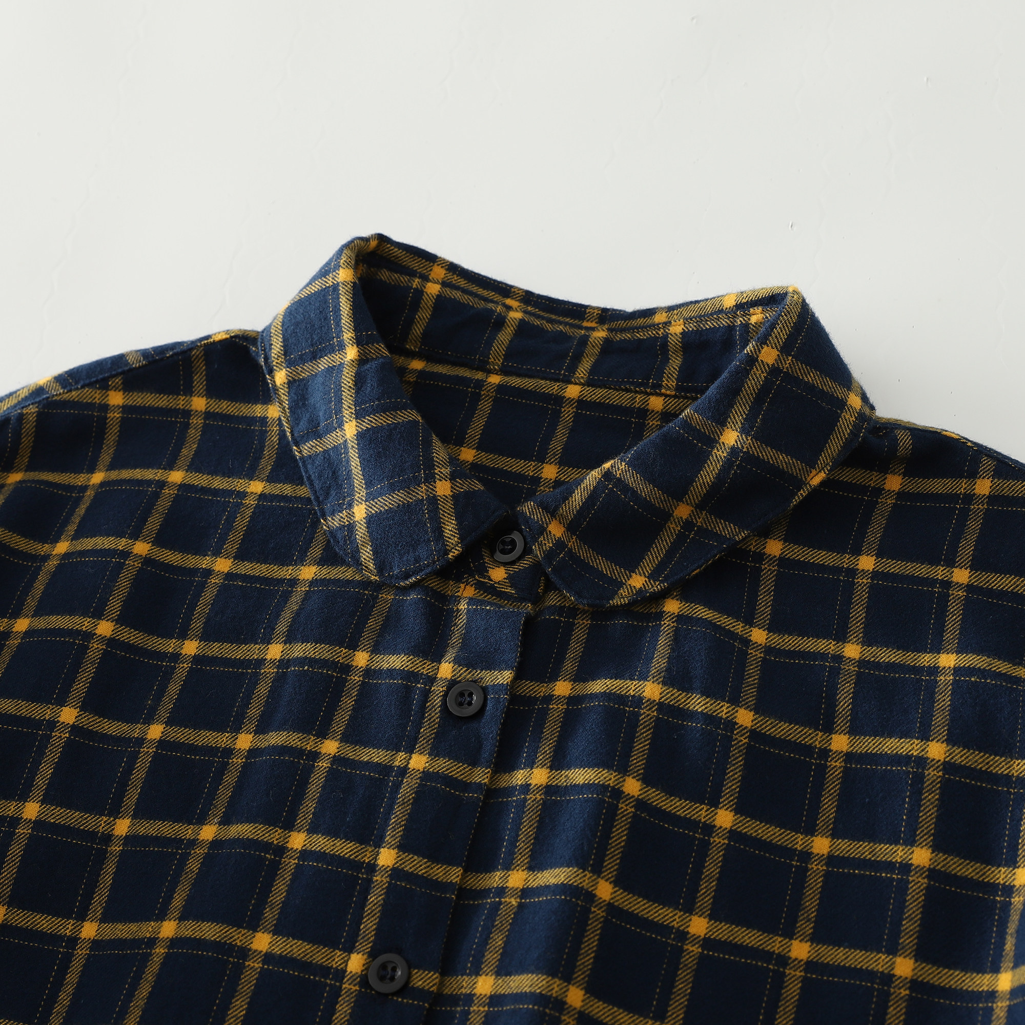 秋冬宽松百搭纯棉磨毛格子衬衫