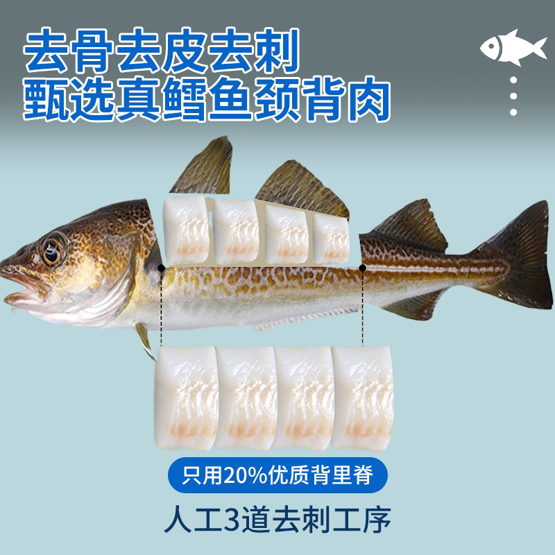 云储生活大西洋真鳕鱼深海中段鳕鱼块新鲜冷冻宝宝辅食鱼肉小包装