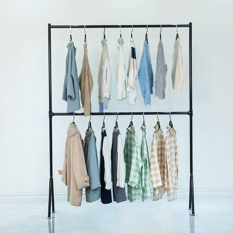 双杆落地挂衣架家用晾衣杆卧室内折叠衣帽架简易阳台收纳凉晒架子