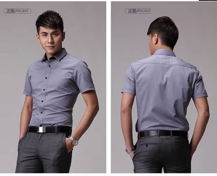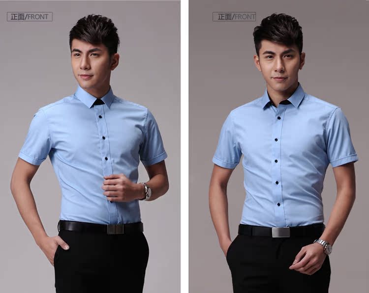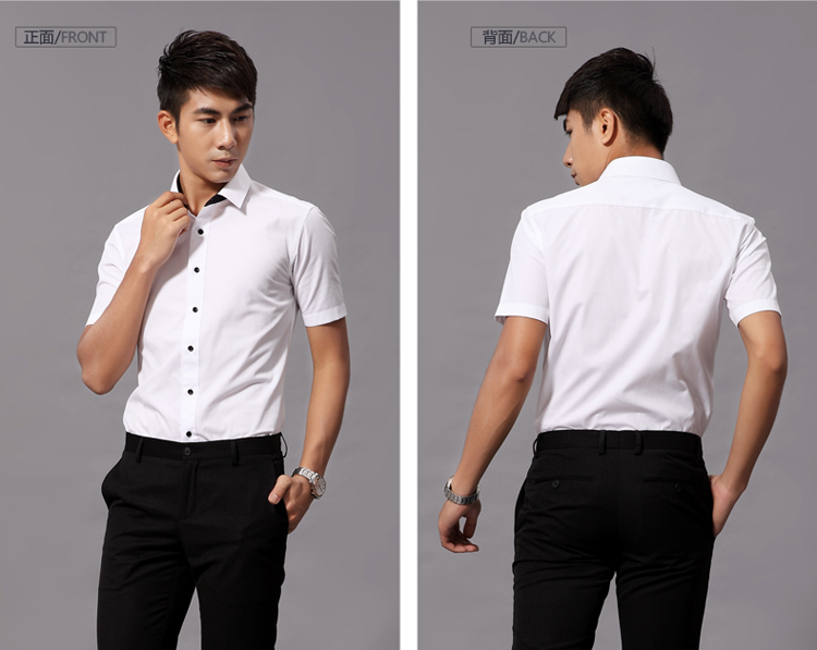 夏季短袖斜纹黑扣男衬衫修身免烫纯棉抗皱青年韩版百搭商务正装