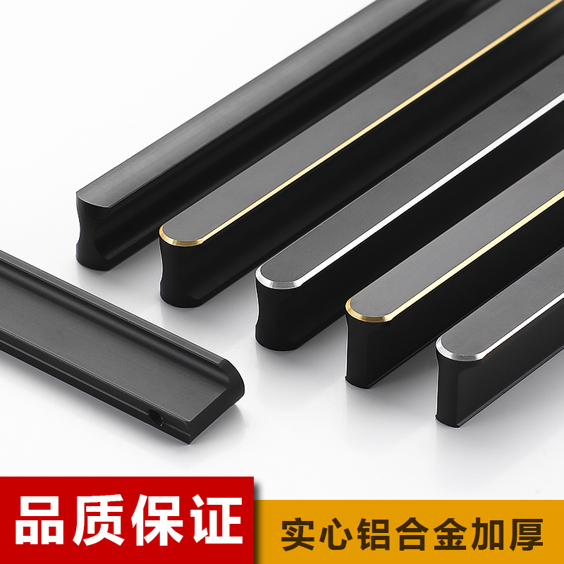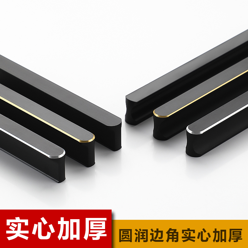 现代简约白色T型圆头衣柜门黑色拉手橱柜抽屉明装拉手黑色把手