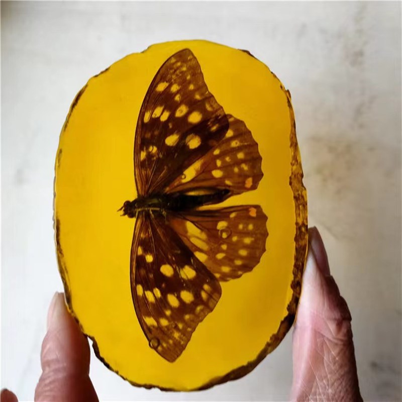 天然真昆虫子标本人工琥珀原石片知了吊坠虫珀蝴蝶蜻蜓螃蟹蜈蚣
