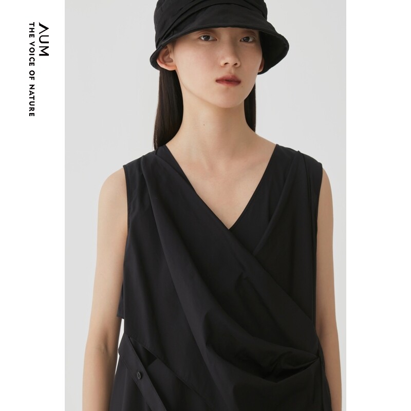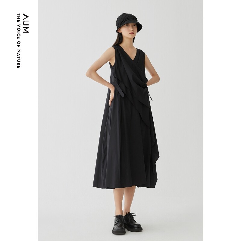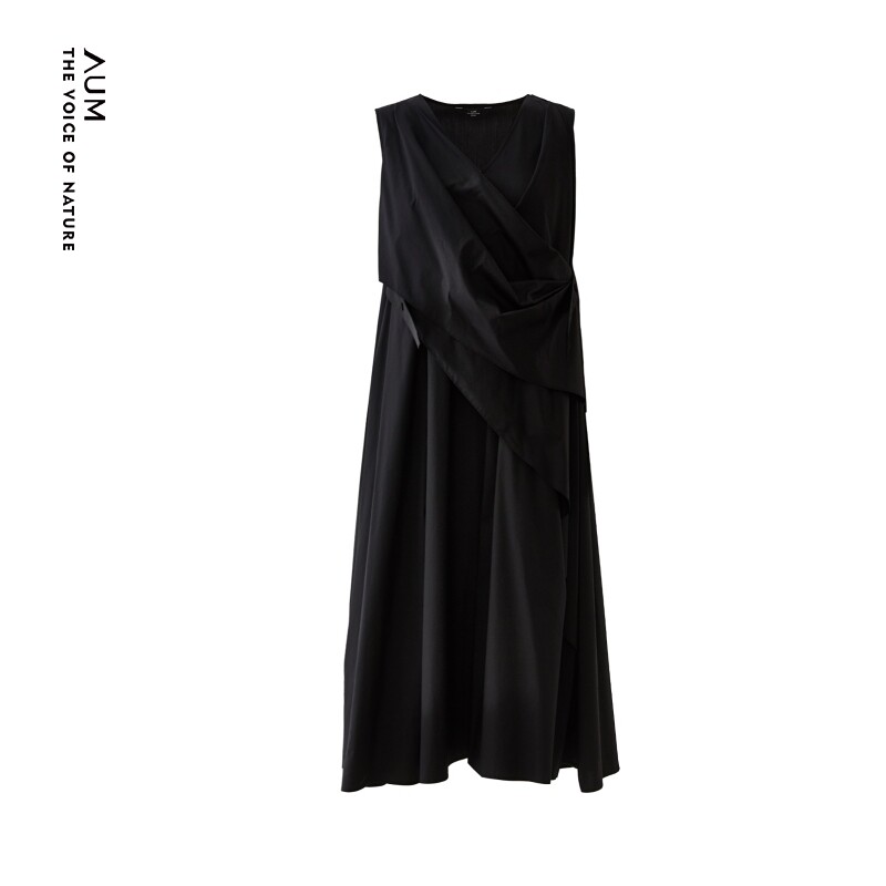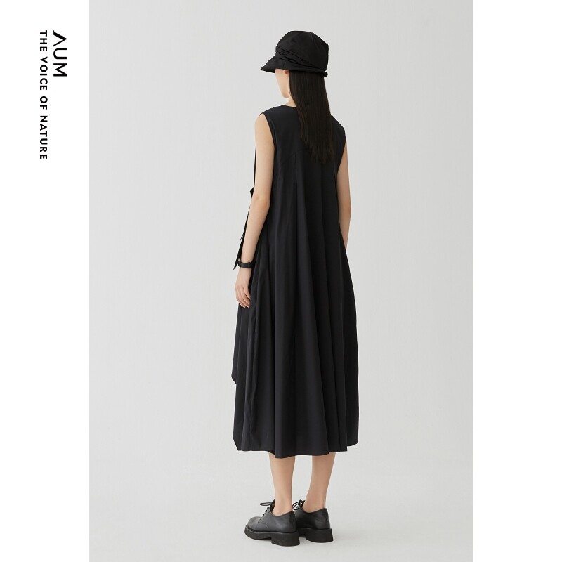 AUM噢姆秋季斜搭式设计黑色无袖连衣裙礼服