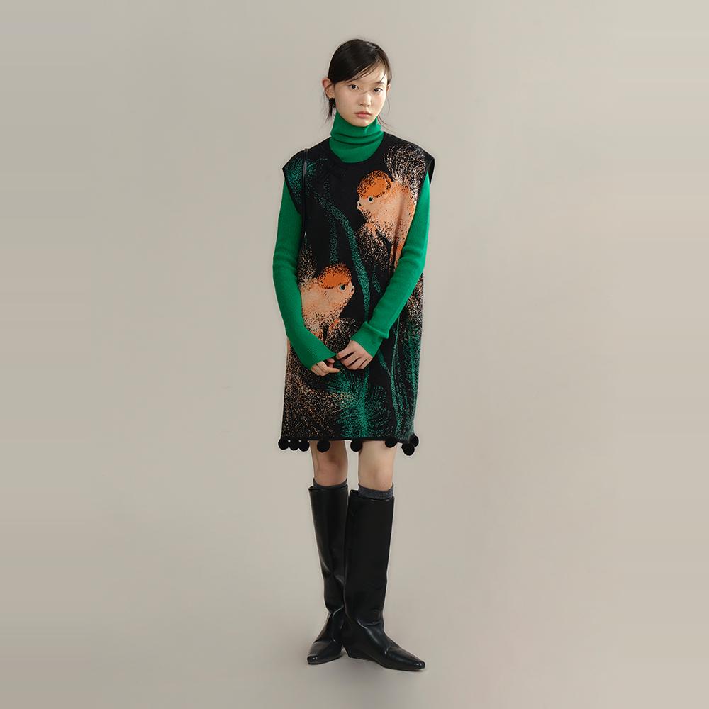 有耳uare原创设计 转运小鲤 新中式金鱼提花针织连衣裙半身裙套装