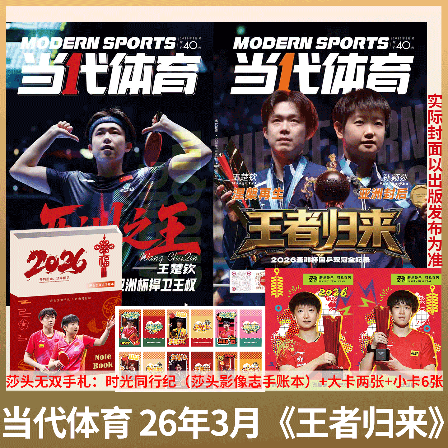 乒乓世界杂志 2026年1-12月全年订阅 2026年3月 孙颖莎/樊振东王曼昱 /全体育/当代体育 王楚钦 //ELLE 3月 孙颖莎/