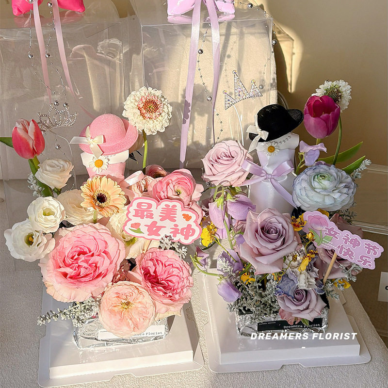 2026新款女神节高定宠爱鲜花束包装盒套装礼盒插花盒花艺花店资材