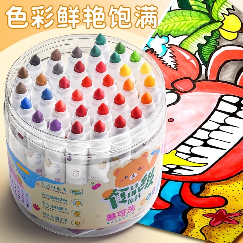 晨光水彩笔食品级儿童可水洗无毒24色彩笔小学生专用画笔36色易可洗涂色笔幼儿园12色彩色笔马克笔桶装双头