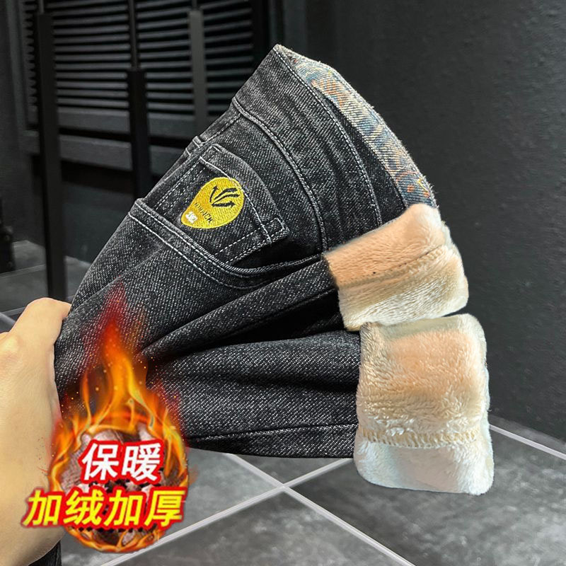 男款百搭长裤2025新款牛仔裤男修身小脚休闲裤潮牌加绒加厚裤子