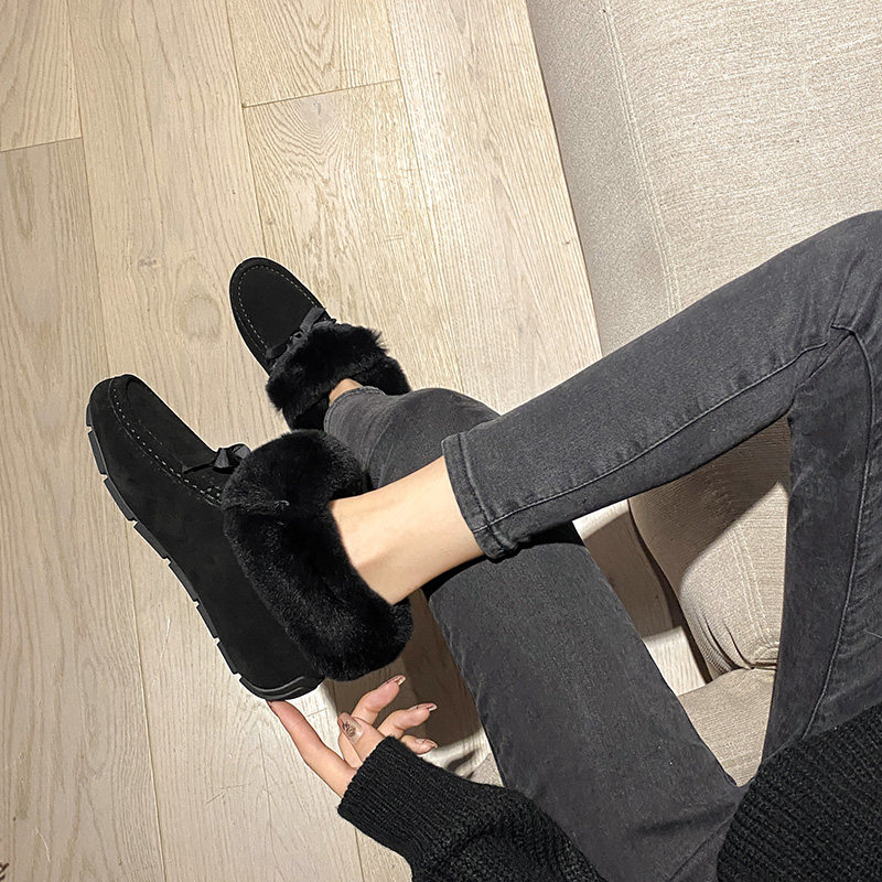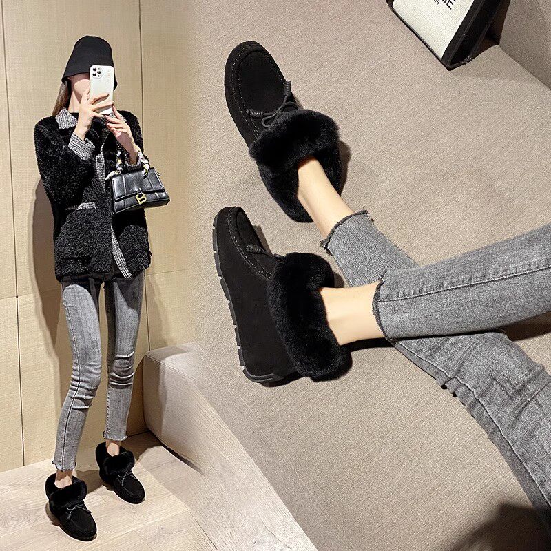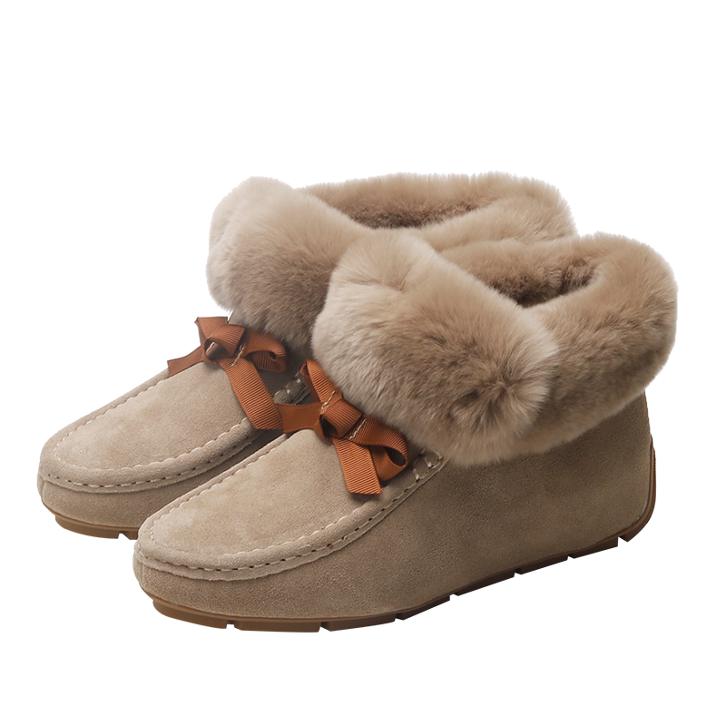 内增高厚底豆豆鞋女冬加绒真皮2025年新款秋冬时尚兔毛毛鞋雪地靴