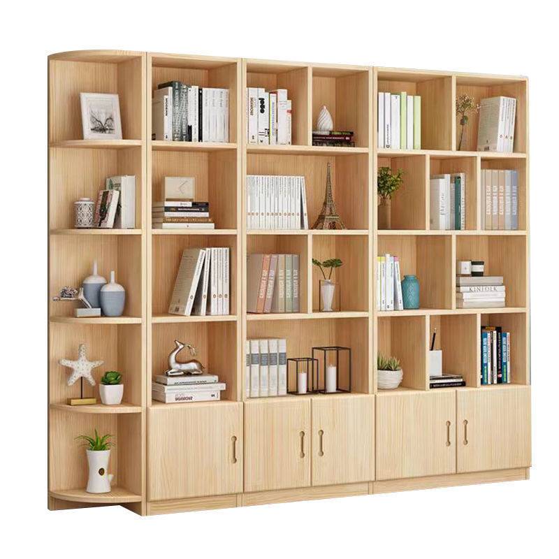 9C实木书架书柜带门自由组合现代书橱置物架落地儿童松木格子储物