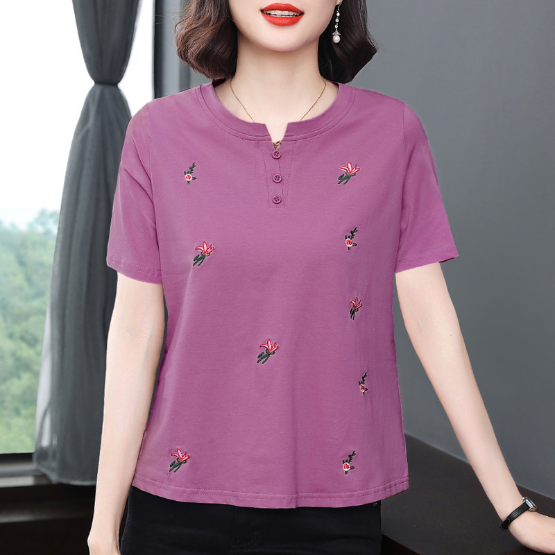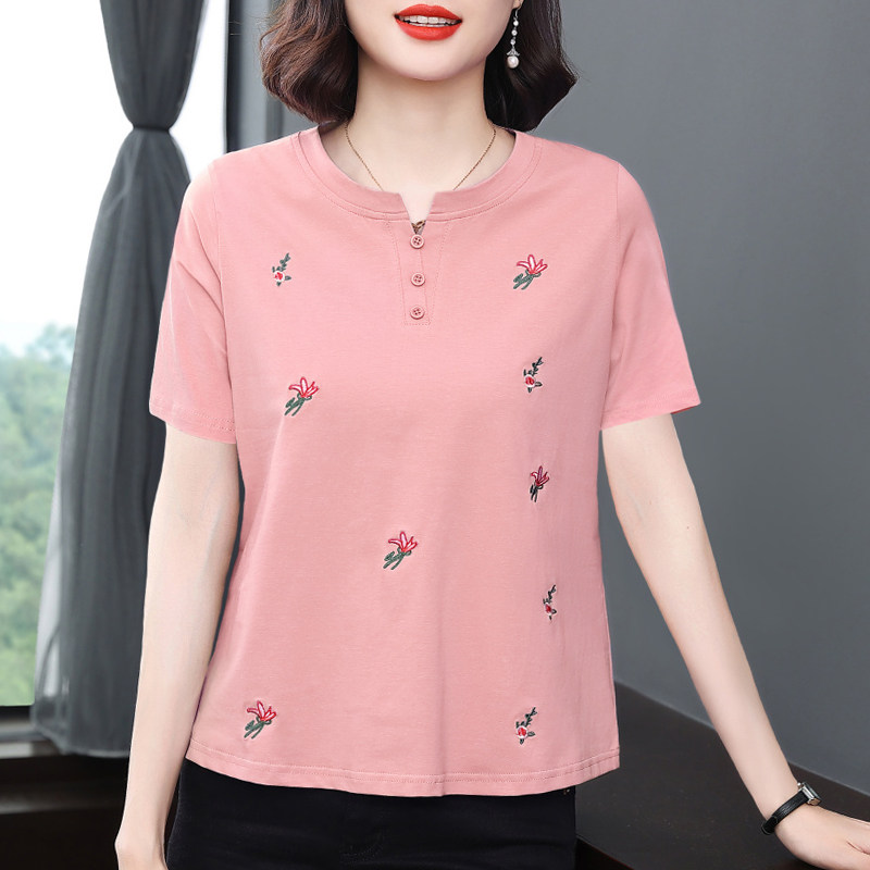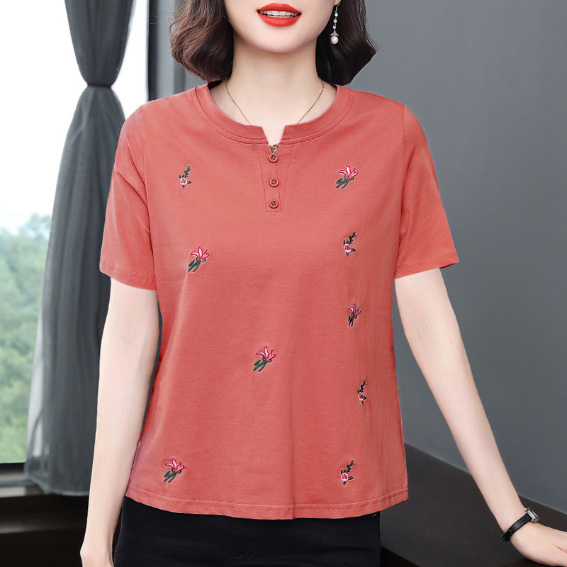 妈妈夏装短袖t恤女 2025新款洋气纯棉小衫中老年减龄大码宽松上衣