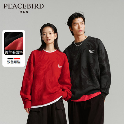 【羊毛衫】太平鸟男装休闲毛衣新款羊毛肌理红色毛衣针织衫