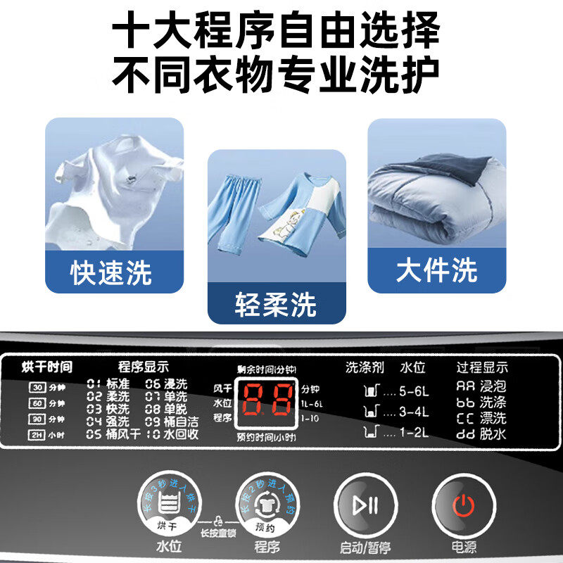 Hleair洗衣机10/12KG全自动家用大容量租房宿舍用波轮洗烘一体