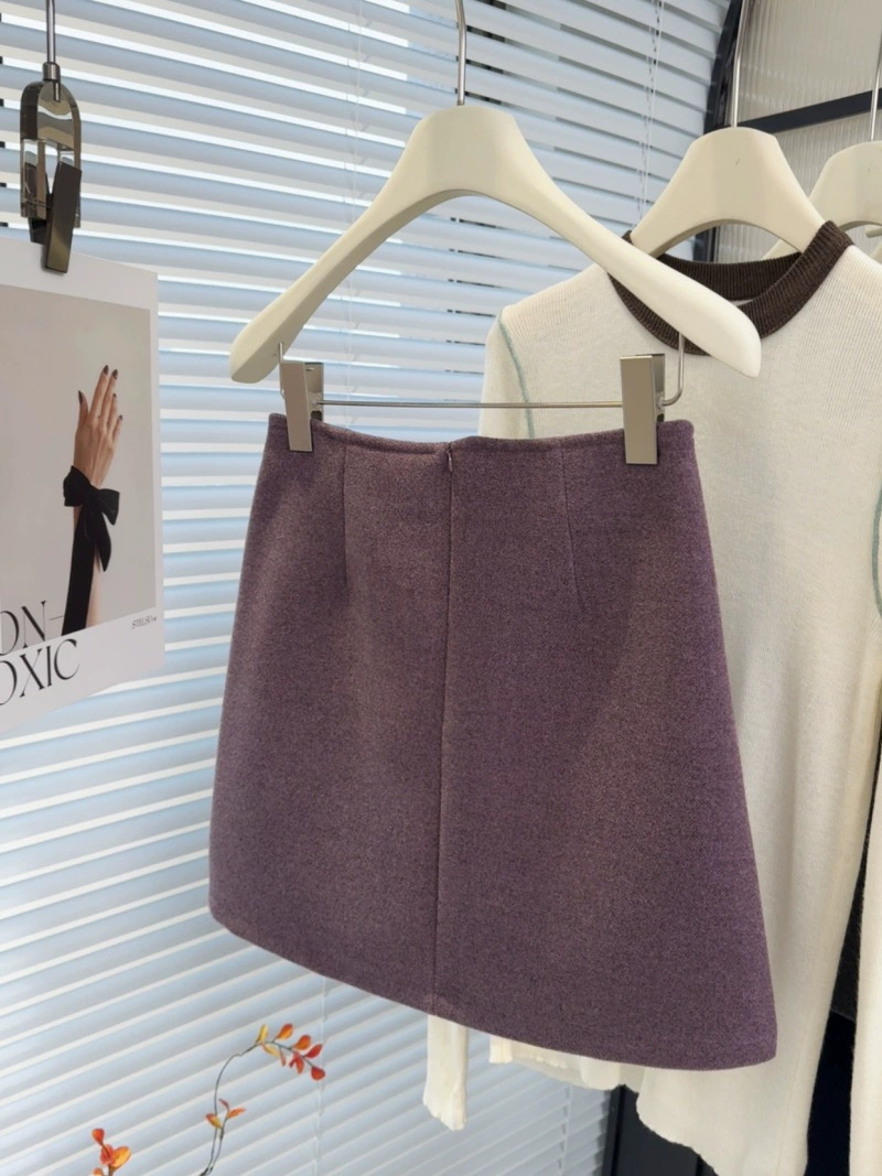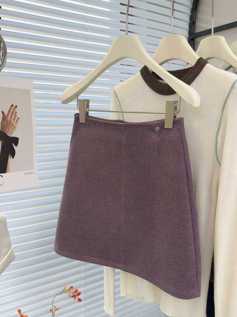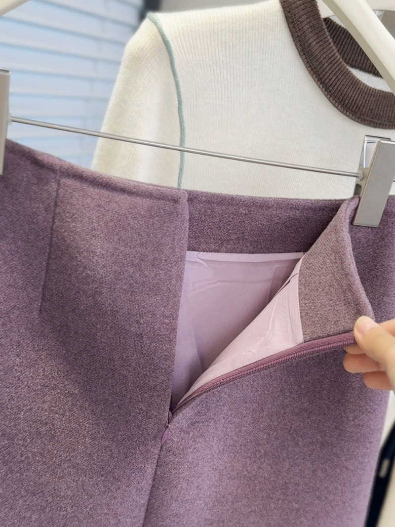 毛呢包臀半身裙女秋冬女装高腰修身显瘦a字防走光打底短裙下装